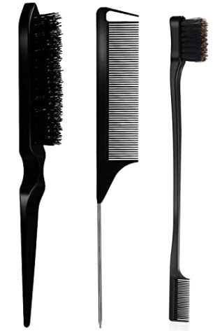 3 Pieces Teasing Brush Set Bristle Hair Brush 3 Row Teasing Brush Dual Edge Brush Sturdy Styling Comb Parting Comb for Brushing, Combing, Slicking Hair for Stylist Women (Black)