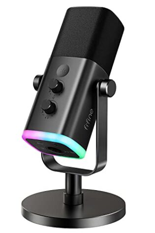 FIFINE XLR/USB Dynamic Microphone for Podcast Recording, PC Computer Gaming Streaming Mic with RGB Light, Mute Button, Headphones Jack, Desktop Stand, Vocal Mic for Singing YouTube-AmpliGame AM8
