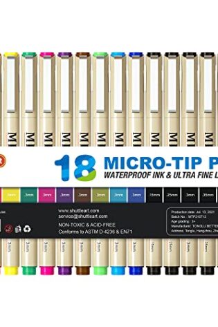 Shuttle Art 18 Pack Micro-line Pens, Waterproof Archival Ink, 11 Colors in 0.3MM Felt Tip & 7 Blacks in Sizes 0.15MM to 0.5MM Multiliner For Journaling Technical Illustrating Drawing Manga Zentangle